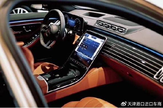 奔驰S450L整个内饰被装饰得富丽堂皇,车内采用了非常多的电子产品,中控部分搭载的是12.8英寸的触屏oled屏幕,行车电脑屏则搭载的是12.3英寸的全液晶彩色大屏设计,并且车内配备了64种车内氛围灯,点亮后的效果应该算是还不错的。空调出风口没有采用普通奔驰的圆形电风扇造型设计,取而代之的是类似于我们家的中央空调设计,出风口更加的柔和。此外,还搭载了平底真皮多功能的方向盘,对开式的中央扶手,再加上棕黄色的内饰布局,科技感确实不错