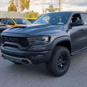 23款道奇公羊霸王龙TRX国六最新款新车传承了道奇Ram 家族高大威猛的造型设计,同时细节部分融入了更多高性能元素,包括经过黑化处理的前格栅,引擎盖两侧的黑色进气口,霸王龙 以及为了容纳巨大的机械增压器而设计的通风口等等。更多咨询请致电:任经理 15620227760 (电话同微信)此外,新车还配备了视觉冲击力更强的黑色轮眉和外露式的拖车钩,看上去十分霸气。