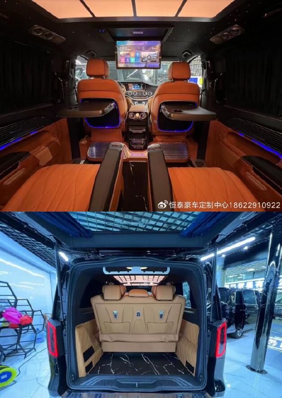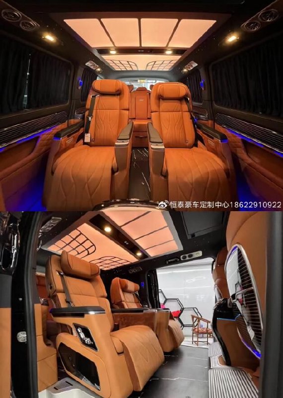 奔驰商务改装整车尺寸:5370mmX1928mmX2080mm,3430mm的超长轴距,9速自动变速箱增强版,M274汽油发动机带涡轮增加。进口v250宽大的驾驶空间,开阔的驾驶视野,尽揽前方征途。进口v250精致的仪表盘和真皮方向盘,车载专用12升压缩机强制冷冰箱,司机座/副驾驶座真皮包覆,为驾乘者提供非常出色的驾驶乐趣和舒适享受。款奔驰V250加长改装隐藏6座版商务。