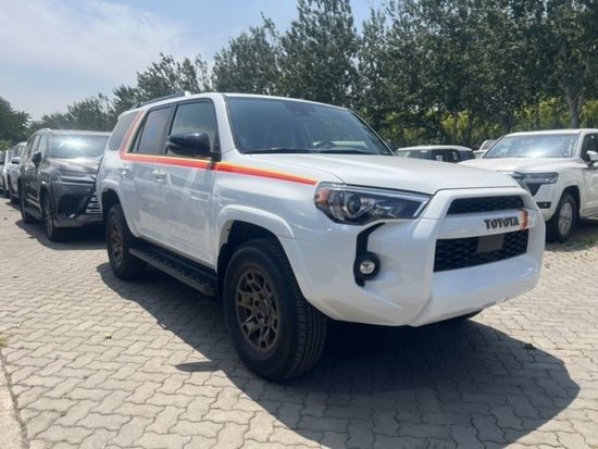 配置:雷达测距、车道偏离系统、并道辅助、天窗、黑色行李架、主副电动座椅、前排加热座椅、方向盘加热、真皮座椅、踏板、到影、40周年纪念版彩条、自动大灯, 8英寸中控屏,带发动机盖进气口、拖钩、全时四驱、17寸合金轮毂、防盗螺丝,四季脚垫。4Runner 车身颜色的后门装饰青铜色青铜缝线换档旋钮17青铜TRD轮内部牌匾车身颜色丰田传统前格栅丰田铜奖40周年纪念地毯地垫40周年身体图形青铜阀座缝合40周年特别版40周年纪念座椅头枕罩。40周年校庆外部徽章