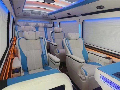 丰田考斯特改装商务车在内饰的设计上更加注重舒适和便利。内饰的设计上充分考虑了乘客的需要。丰田考斯特12座椅设计了豪华的办公桌以真皮为主。办公桌加桃木及地毯装饰。丰田考斯特改装商务车在窗帘的选择上也是别有心思。丰田考斯特改装商务车可以选择豪华的布艺窗帘或者百褶窗帘。