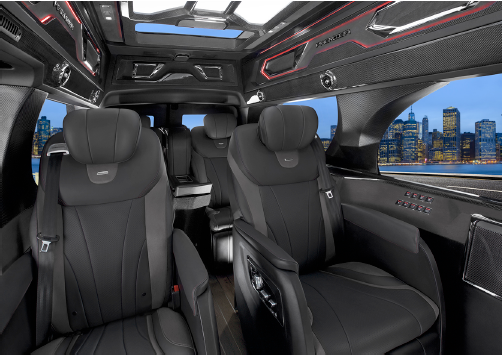 GMC商务车商务中不失科技感,大型瀑布式中控台、非对称式侧墙造型、后排流线型护围、悬浮式扶手台、顶级Harman音响、40“液晶电视、4G移动Wi-Fi、视频会议系统、车载电热水壶、电动折叠桌板、豪华车载冰箱、內镶式电动酒柜、前后路况监视系统,车内电器均可由液晶触摸屏控制,商务功能一应俱全。