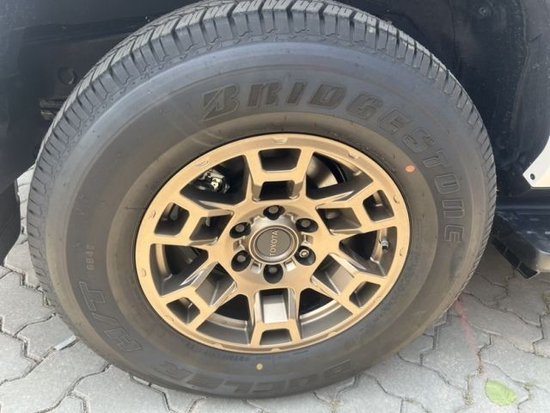 配置:雷达测距、车道偏离系统、并道辅助、天窗、黑色行李架、主副电动座椅、前排加热座椅、方向盘加热、真皮座椅、踏板、到影、40周年纪念版彩条、自动大灯, 8英寸中控屏,带发动机盖进气口、拖钩、全时四驱、17寸合金轮毂、防盗螺丝,四季脚垫。4Runner 车身颜色的后门装饰青铜色青铜缝线换档旋钮17青铜TRD轮内部牌匾车身颜色丰田传统前格栅丰田铜奖40周年纪念地毯地垫40周年身体图形青铜阀座缝合40周年特别版40周年纪念座椅头枕罩。40周年校庆外部徽章