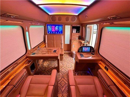 丰田考斯特是现在商务车市场上最受欢迎的一款接待用车,丰田考斯特改装商务车最主要的特色在于内饰的改装上,满满丰田考斯特商务车可采用豪华的单人真皮座椅,宽敞舒适,360度可旋转的航空首长席更是在一定程度上方便了我们旅行商务办公或者娱乐的需要。原装进口的埃尔法 (配置|询价)座椅,增加通风散热以及电动脚托等设计,为我们提供更加舒适温馨的乘驾环境。