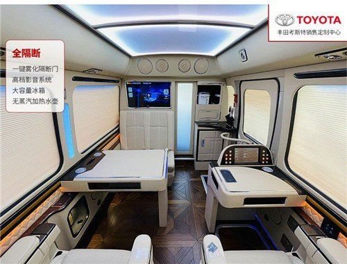 丰田考斯特车内的窗帘的设计上丰田考斯特也充分考虑了内饰设计的独特性,豪华的布艺窗帘以及大气的电动百褶窗帘, 丰田考斯特改装商务车在内饰设计上充分展示出了自己大气的风格设计。丰田考斯特是在目前在售的丰田柯斯达的原车的基础上升级改装而来,最主要的升级部分是内饰,比如:航空座椅、地板、沙发床、隔断、办公桌、车载冰箱、220V电源插孔、热水壶、唱歌系统、车载窗帘等等。当然外观也可以升级包围,不过升级外观包围带公告的话,价格比较贵,单这一项就得要大几万,最终看客户自己觉得有没有必要。我们用来升级的原车要么用指导价45.6万那款,要么用最高配的指导价55.89万那款。升级改装的价格视改装项目多少和改装材质情况而定,改装项目越多、所使用的改装材质越好,价格也就越贵。原车价加上改装费,再加上公告费用就是最终的车价。如果最终落地,还需要加上车子的保险和购置税。