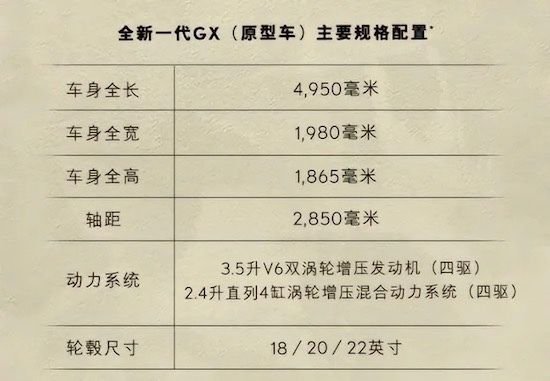 动力方面,动力方面,GX550将搭载3.5T V6双涡轮增压发动机,最大功率354马力,最大扭矩649牛·米,3.5T车型匹配10AT变速箱,并配备全时四驱系统、拓森中央差速锁及电控分动箱,牵引力可达8000磅。Overtrail版本还将配备后差速锁,另外,全新GX未来还将会推出2.4T发动机与电机组成的混合动力版本车型,传动系统匹配8AT变速箱。