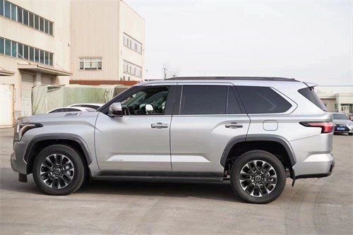 23款丰田红杉新车身侧面来看,新车拥有更加完整的车体结构,隐藏式的A柱设计营造出了悬浮式车顶的视觉感受,前后侧面翼子板造型也更好的突出了新车宽体的设计思路,搭配六螺栓孔的大尺寸轮圈,提升了整车的气场。