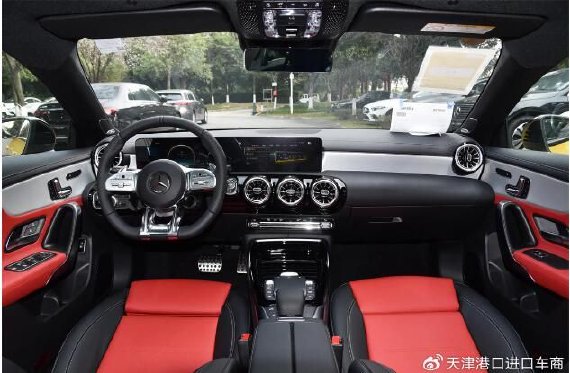 全新梅赛德斯-AMG CLA 35的内饰整体保留了全新CLA级的设计样式,但却融入了运动十足的AMG风格。中央双10.25英寸大屏融合了全液晶仪表盘和中控屏,营造出很强的科技感,搭配新样式的空调出风口与AMG风格的方向盘及运动型座椅,整体氛围充满斗志。