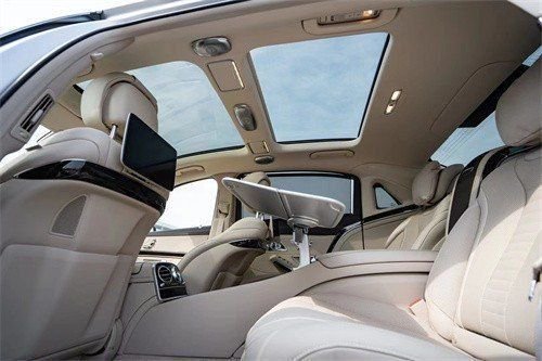 奔驰迈巴赫S560外观方面车身长度5462mm 宽度1899 高度 1499mm 最小离地间隙 131mm轴距为3365mm是整体的精髓所在,也是与奔驰S级在车身长度上的最大区别。而最具诱惑感的还得属背部设计,面部塑造圆润饱满,与之再匹配星辉式的羽翼尾灯、镀铬后的双边四出排气筒,其尊贵、时尚及运动融为一体。
