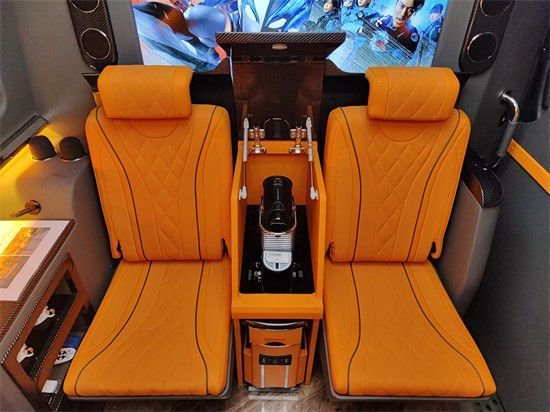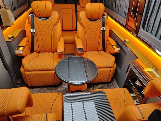 奔驰斯宾特商务版报价斯宾特,中间电动伸缩隐藏小桌板和隐藏咖啡机。刘经理:18002126567《同微信》座椅带迈巴赫刺绣,座椅选用爱马仕橙色和黑色滚边搭配,地板选用高级奢石花纹铝制地板,霸气又有格调。