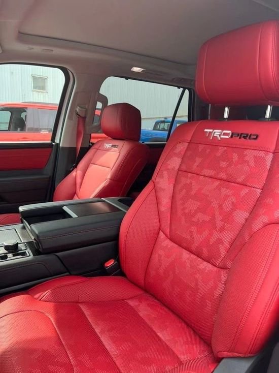 23款丰田红杉的内饰的实用性与空间利用率在这代红杉身上均得到提升,坐进车内,第一感受就是大,前排的两个大尺寸的真皮座椅,自带打孔透气皮料,四幅式多功能方向盘,握在手里的质感不错,转向也没有想象那么重,T型的中控平台,尺寸方面也比一般车型大不少,14英寸的中控触摸屏,集成了几乎所有的影音娱乐以及车身控制功能。