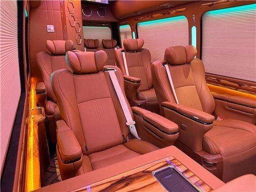 丰田考斯特是现在商务车市场上最受欢迎的一款接待用车,丰田考斯特改装商务车最主要的特色在于内饰的改装上,满满丰田考斯特商务车可采用豪华的单人真皮座椅,宽敞舒适,360度可旋转的航空首长席更是在一定程度上方便了我们旅行商务办公或者娱乐的需要。原装进口的埃尔法 (配置|询价)座椅,增加通风散热以及电动脚托等设计,为我们提供更加舒适温馨的乘驾环境。
