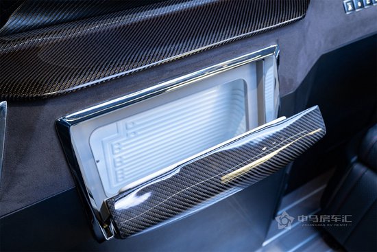 隐藏式商务桌板,方便车内办公,桌板材质也都是采用碳纤维材质,可以说车内的每一个细节,都能让人感受到壕无人性的高级感!