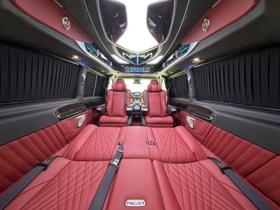 小窗侧拉窗、全车镀铬套件+车窗亮条、V-class (配置|询价)大灯和尾灯、日间行车灯、顶部行李架、迈巴赫大包围+竖条中网+侧裙、新款迈巴赫19寸轮毂、水转印装饰件+涡轮出风口、中门右侧雨伞桶+迈巴赫雨伞、全车内饰镀铬装饰套件、四门奔驰原厂中控锁、全车内饰真皮包覆、H300C天窗、安道拓定制顶灯、奔驰原厂分体休息脚踏、四门镜面迈巴赫迎宾踏板、棕色真皮仪表台、台湾皮诺基手动窗帘、进口翻毛绒顶棚、咖啡色羊绒地毯、吸顶电视、前排原厂冰箱、前排电动座椅带通风加热、安道拓旋转电动航空座椅奔驰原厂开关、第三排180°电动沙发床奔驰原厂开关、后排折叠小桌板、倒车影像。