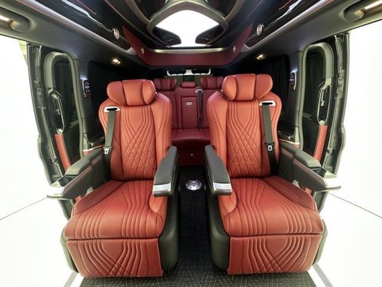 进口奔驰V250 7座商务车后舱前为两个独立航空座椅。中央的首长席座椅多功多样,包括多向电动调节、腿托、通风加热按摩,无线充电等。此款航空座椅经过国家3C认证并配备液晶智能触控调节屏幕,安全舒适。上面的缝线也相当细腻,首长席均配有可折叠桌板,后排除了正常容纳三名乘客非常宽松的乘坐之外,还能将其完全放平。
