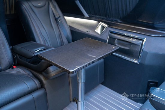 隐藏式商务桌板,方便车内办公,桌板材质也都是采用碳纤维材质,可以说车内的每一个细节,都能让人感受到壕无人性的高级感!
