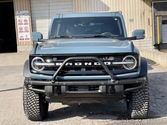 2023款福特烈马采用方正的整体造型,新车的发动机盖充满了规整的线条,圆形的头灯组延向中网延伸出光带,“Bronco ”字样直接镶嵌于进气格栅中间。此外新车车门、侧/尾窗和车顶等位置采用了可拆卸的设计,十分硬派。