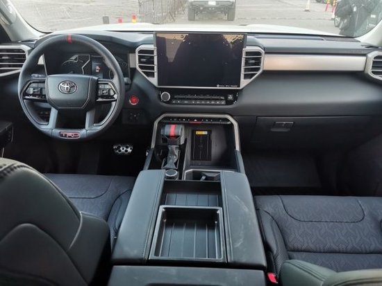 丰田坦途3.5TT的五个小仪表给出了司机应该注意的技术参数,转速表、时速表、油量表、水温表、电池/机油表依次排列,数据显示清晰明了,中控台科技感十足,三辐方向盘延续了家族设计理念, 金属、木材、皮革等多材料营造了相当豪华的视觉感受,丰田坦途内饰简洁大方依旧突出了实用特点,室内色彩的精致搭配,让整个内部空间既充满质感又倍感时尚。