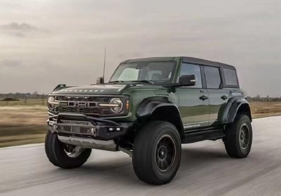 这是Hennessey推出的第8款迅猛龙车型,也是Bronco的第二款车型。该公司去年推出了VelociRaptor 400 Bronco,将这款SUV的2.7升EcoBoost发动机提高到411马力(306千瓦)和603磅英尺(818牛·米)扭矩,与新车型相比,还进行了一系列外观升级。