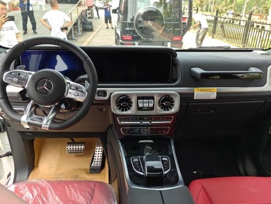 2023款奔驰G63档次、质感和科技配置都明显提升,采用了奔驰最新的双屏幕式设计,全液晶仪表盘和中控台屏幕都达到12.3英寸,同时内饰质感和工艺都有了很大的进步。中控涡扇式空调出风口也颇具设计感,车内的高档皮革内饰以及标有V12钻石图案设计的座椅、车门面板和脚垫,无不彰显着车主的尊贵身份。