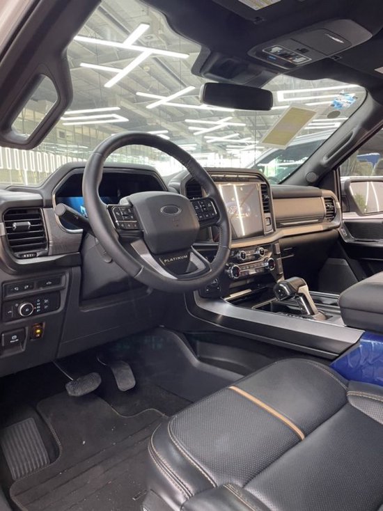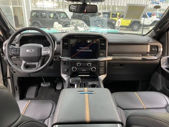 福特F150 内饰采用独特的中控台和门饰板面漆和真皮包裹的方向盘。中控台部分辅以银色饰板装饰,六指针仪表盘的设计有些后工业时代的复古风格。采用带电冷热功能的可记忆式皮革座椅,头枕四向可调,搭配铝饰条和黑色钢琴烤漆内饰可电动升降的后窗带隔板和电热除霜功能。宽敞的空间可以让成员舒服的伸开双腿、展开双臂。