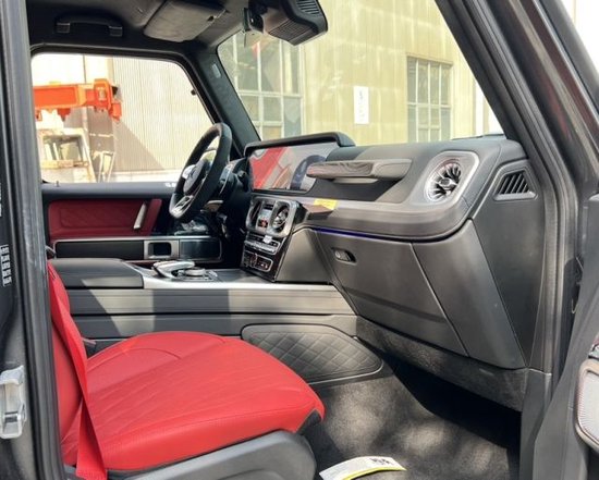 奔驰G63 (配置|询价) 23款 韩规 配置:GT按键,22英寸AMG10辐轻合金轮毂;红色卡钳,红色安全带,AMG菱形格座椅;前/后排座椅加热;前座椅通风;前排座椅按摩、多轮廓座椅、独家钢琴漆装饰;天窗;3区空调;氛围灯、Burmester音响系统;带 360°摄像头的停车包;宽屏;多功能真皮加向盘;多光束LED大灯;主动车道保持辅助;主动刹车辅助;主动距离辅助系统;注意力监测;主动泊车辅助系统;车道保持辅助;预安全防护系统、后拖钩。(实木内饰,同色车身备胎罩)