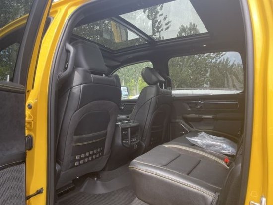 2023款道奇公羊霸王龙从内饰上看,它也毫不逊色。中控部分配备了12英寸竖置中控屏幕,屏幕一横加一竖,按键很齐全,档把也是彰显霸气,手小的可真是不好握,随处可见TRX标识,这样一个庞然大物内饰也是十分潮流的。