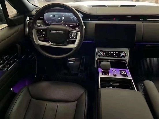 23款路虎揽胜大量真皮包裹,配合沉稳的造型很好的凸显豪华SUV的属性。路虎揽胜行政加长版配有双液晶显示屏、无限多媒体控制器、英国之宝音响等奢华配置应有尽有。采用四辐多功能方向盘,驾驶过程中能更好的操控,中控台两侧控制按钮改为触摸式,全新升级导航系统简洁易用。