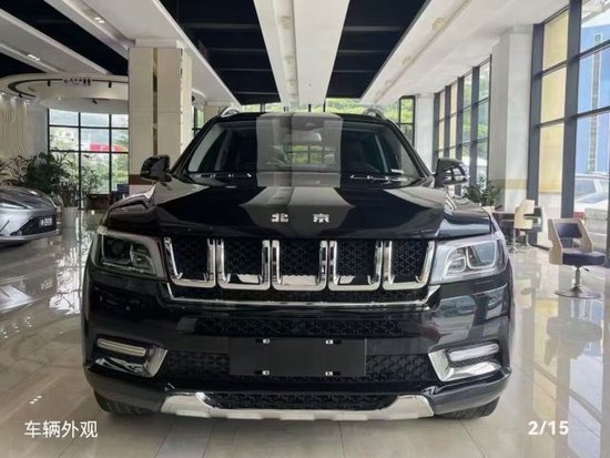 北京BJ90基本延续了旧款车型的造型设计,前脸的进气格栅依旧通过宽厚的镀铬装饰填充,形成五孔造型,底层则是采用黑色的网状结构包裹。两侧平行四边形样式的大灯组与进气格栅融为一体,灯腔内配备氙气远光灯光源,而L型LED日间行车灯则位于灯组顶部。前包围区域通过棱角分明的镀铬条装饰,呈现出三段式布局,梯形样式的下进气口内部同样采用黑色网状结构填充。