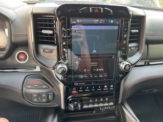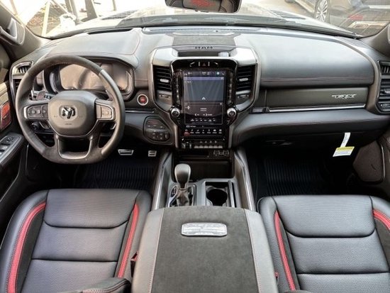 23款道奇霸王龙在内饰部分进一步强化了其高性能版本的形象,中控台和座椅随处可见的TRX标识便是最好的例证。同时,作为道奇家族的旗舰车型,新车还配备了12英寸竖置中控屏幕,除了支持蓝牙、导航和车载Wi-Fi等常见功能,还支持AppleCarPlay和Android Auto手机映射。