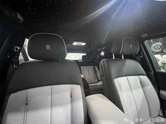幻影车内,车窗玻璃一侧依旧设计了按键,长按就可以自动关闭车门。它的内饰设计与普通版车型明显不同,星空顶上面增加了一些刺绣工艺,坐进车内后仿佛置身于银河中,车门内侧同样也是星空,这也是这款车型的专属。