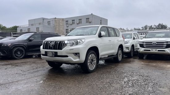 23款丰田霸道4000GXR 白/米 配置;150升油箱,天窗,19轮,九气,后挂,车身色电动后视镜,尾翼,一体式行李架,LED 前雾灯,前后电眼 三区自动空调,中控台,冰箱,皮质方向盘,织物座椅,9 英寸导航屏幕,6 音响,多功 能方向盘,手动大灯调节,智能卡,无钥匙进入 主动牵引系统,倒车影像,定速巡航,坡道辅助,托森中差速锁 现车手续齐