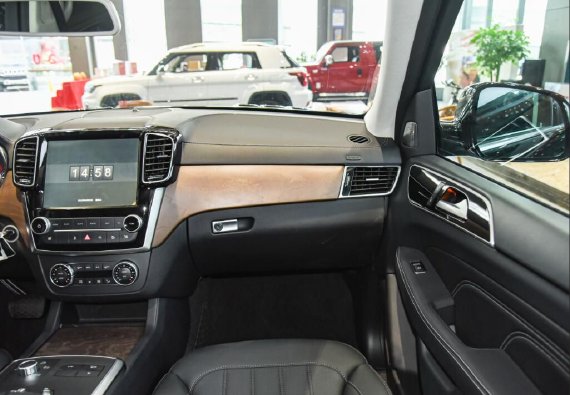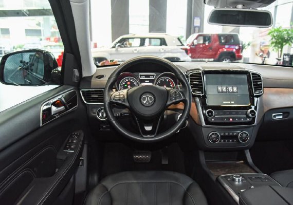内饰方面其整体能让我们可以看到许多老款奔驰GL级的设计元素,包括中控台整体造型、控制旋钮以及中央扶手箱附进控制区等都保持了较高的一致性。不同之处在于,北京BJ90配备了一块尺寸更大的中控液晶屏幕,并且换装了带有北汽LOGO的全新多功能方向盘。同时,中控台上方的空调出风口也由老款的横向造型调整为竖向造型,在增加了线条感的同时,也让其内部看起来更具豪华感。