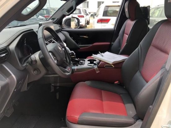 中东版-2022款酷路泽LC300 3.3T 柴油GR-sport运动版(天窗 抬显 后娱 无雷测)亮点配置:双透镜LED大灯带流水转向 LED雾灯 轮胎型号 265/65 R18黑轮毂蠕行模式(低速巡航)+坦克调头+高低速四驱+三把差速锁 倒车碰撞预警 遥启 冰箱10气囊 桃木内饰 雨量自动感应 主驾驶10向电动调节+副驾驶8向调节 高级真皮打孔座椅三组记忆功能 前排+后排座椅通风 、座椅加热 导航 环影 手机无线充电 JBL音响 四区空调 天窗 电尾门 三排座椅电动折叠/三排座椅靠背电动调节 抬显 CD 二排DVD娱乐MTS多地形模式选择(AUTO/DIRT/SAND/MUD/DEEP SNOW) 六种驾驶模式 (ECO/COMFORT/NORMAL/SPORTS/SPORTS+/CUSTOM) AVS运动底盘 E-KDSS动态悬挂系统 底盘透视