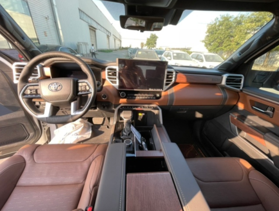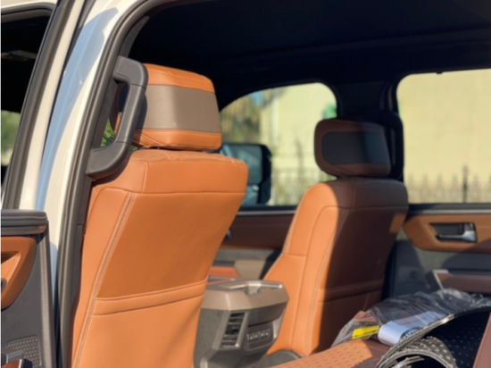 23款丰田坦途皮卡车内乘坐、后排座椅宽大,足以满足身高195cm的贵宾,第二排座椅可以完全折叠收起,为乘客提供更宽敞的腿部空间, 已经达到了中大型车的水平,完全可以满足舒适乘坐的需求,部分特殊的装载给您的路途更添信心。