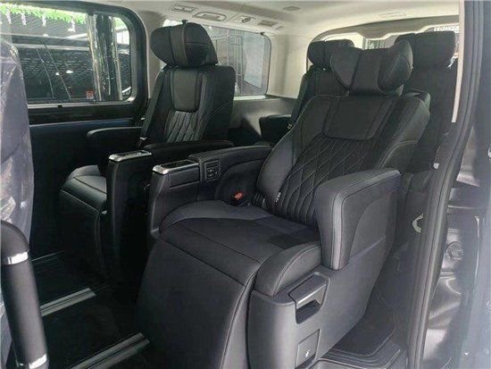 23款丰田格兰维亚最大的特点,就是第一次把商务车的第二排和第三排都换成了四个独立的头等舱航空座椅,不仅包裹舒适性更强,而且后面四名乘客都有独立的私密的乘坐空间,且都带电动调节和腿托。