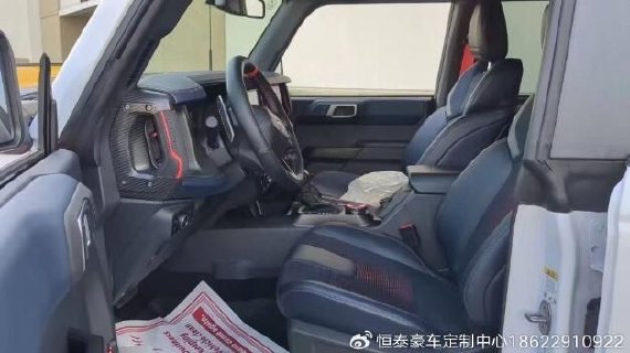 2023款福特烈马Bronco车内采用硬朗的设计风格,中控台设计主次分明且有层次感,用料也厚实,多功能方向盘造型运动,中控屏幕采用内嵌式的设计增添了车内的时尚感,按键布局合理,档把设计精致,座椅宽大厚实,空间宽敞,实用性强。