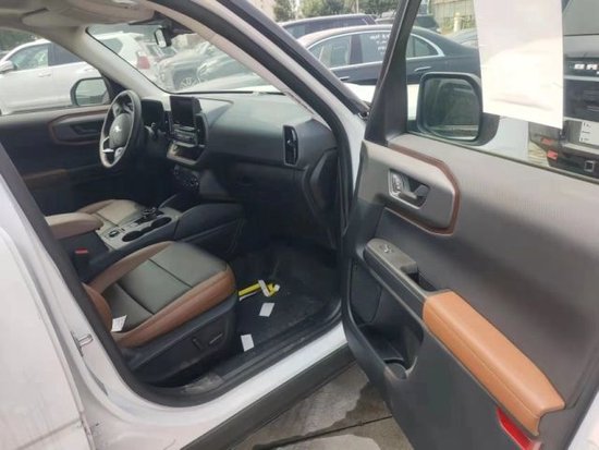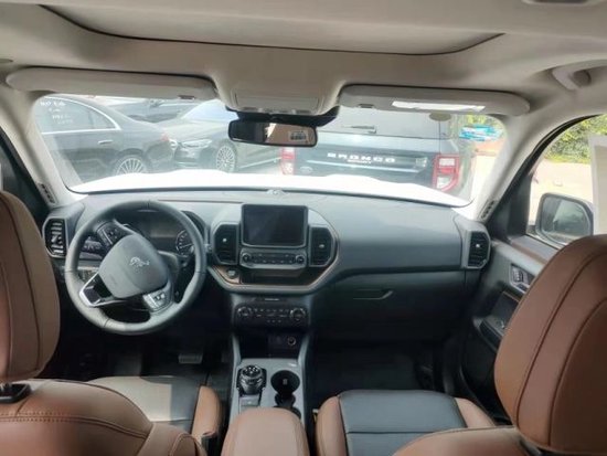 22款墨版福特Bronco Sport Badlands荒地配置:预碰撞带行人检测,前后影像带清洗,忙点监测,胎压,车道保持,无线充电,BO音响,10扬声器,触摸屏,智能卡,远程启动,双区自动空调,前座椅加热,110V电源,自动变光后视镜,自动远光灯,天窗,加热方向盘,可锁定差速器,LED大灯,LED日间行车灯,LED前后雾灯,全尺寸备胎,黑色行李架,17寸越野胎,9气囊,旋转档把,私密玻璃,扭矩矢量控制,7种驾驶模式,房车拖钩