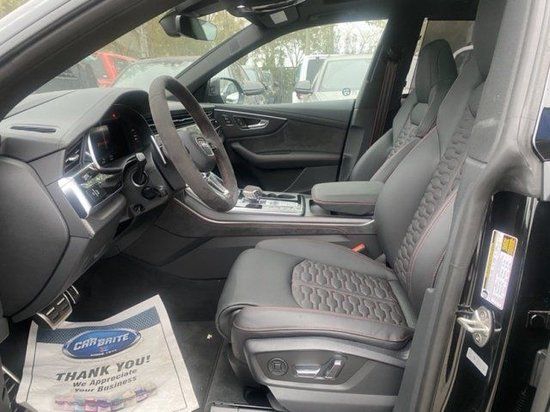 23款奥迪RSQ8内饰搭配就显得简约大气的多,应用Mastrotto小牛皮、Alcantara麂皮绒等多种高端材质,无论是豪华感还是舒适性都有很大的提升。另外,门板。中控台均有碳纤维材质的出现,而与之红色“mansory”标识、缝线相搭配,在一定程度上同样赋予很强的运动气息!