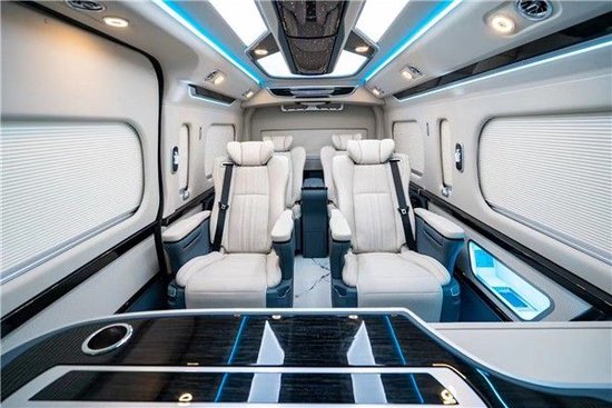 丰田海狮改装商务车在内饰的设计上追求舒适性和实用性,党作为一辆商务车的时候,丰田海狮充分注重商务车的适用范围,在内饰的设计上以大方高贵为主。360度可旋转首长席方便在乘车过程中的临时会议,大家可以调转座椅的角度,方便大家更好交流。华通丰业丰田海狮商务车,设置豪华办公桌以及秘书席,作为一辆移动的办公室,丰田海狮在内饰的设备上保证了我们所有的需求。