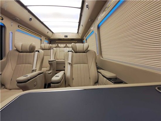 首先从丰田考斯特的车身外形上来说,为满足高端客户针对公务、商务活动以及办公需求而专门设定。首先我们看到的是车身端庄典雅的米黄金色,金属漆的设置,没有纯金色的刺眼,在端庄之中不失柔和之感。镀铬防蹭之上平行增加彩色腰线,色彩的搭配尽显贵族风范。在车轮处增加装饰轮罩,既能保护车轮确保行驶安全又可以增加车的美观,更显高贵之态。在车头的改装设计上,色调不再单一,镀铬前格栅再加上醒目的镀金丰田标志,更体现出车头设置的精细美观。大灯以及雾灯均才有镀铬技术,增加车身的美观。18510599939 彭经理同微信