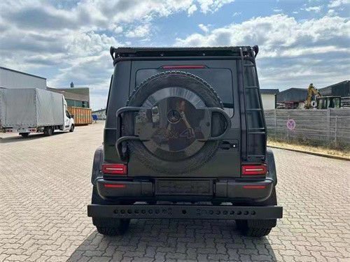 奔驰AMG G 63 4X4加宽了轮眉,新增加了车顶行李架,并还设置了专门的梯子可以方便拿取行李,尾部备胎也看上去更大,整个新车离地间隙变得更高,尾部还新增了一个辅助保险杠。肉眼可见的越野性能全面提升。作为全新一代的升级,新车拥有G 63车型的包围和AMG专属的Green Hell Magno车漆,展现出强大的性能。咨询热线 18920724444 杨经理