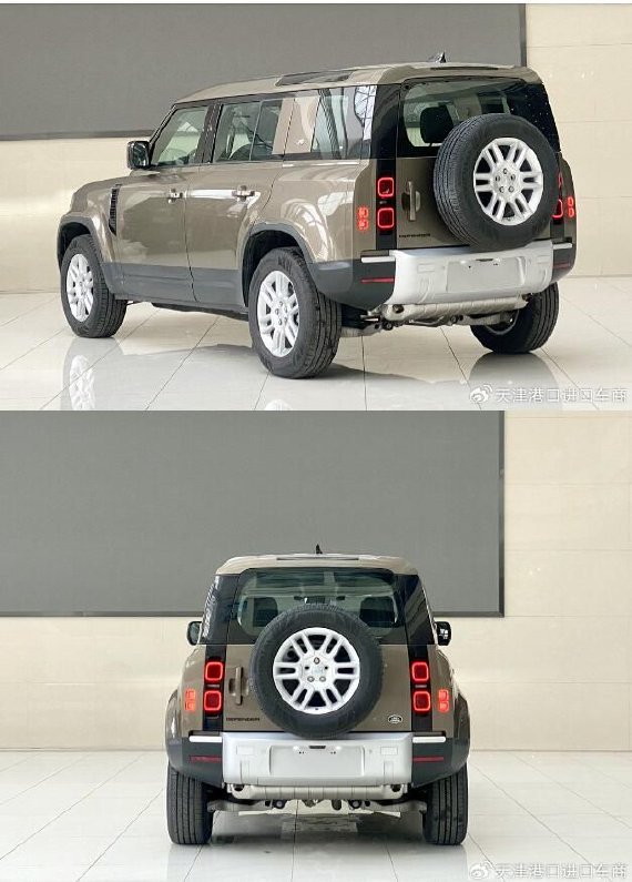 车尾部分,路虎卫士110尾部采用了竖向布局尾灯组,同时还使用了外挂式备胎。此外,后包围还使用了熏黑+银色装饰件。整体尾部造型相比前脸更具方正感,同时也凸显出了极佳的硬派气息。