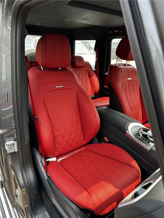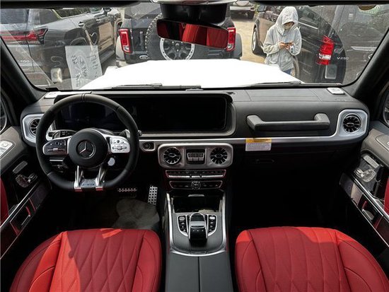 23款奔驰G63双12.3英寸高清显示屏 仪表盘中的信息能够以不同格式显示在双12.3英寸高清显示屏中,3种显示风格可供选择,可更生动地显示车辆功能信息。后排有独立空调、充电接口、座椅配置了头枕,中央扶手里有杯架。后排座椅可以调节靠背角度,也带有加热功能,支持按比例放倒。