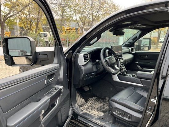23款丰田坦途铂金版车内乘坐、后排座椅宽大,足以满足身高195cm的贵宾,第二排座椅可以完全折叠收起,为乘客提供更宽敞的腿部空间,已经达到了中大型车的水平,完全可以满足舒适乘坐的需求,部分特殊的装载给您的路途更添信心。