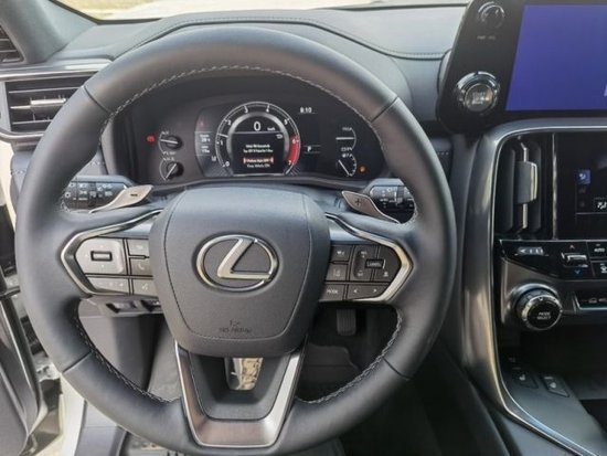 23款改款雷克萨斯lx600内饰采用了对称式中控台设计、继续提供液晶仪表和HUD抬头显示等配置。并首次加入双屏显示器该中控屏由12.3英寸的上屏和7英寸的下屏组成。另外车辆启动按钮被设置在了中控屏一侧,并首次配备了指纹识别。内饰采用了家族式最新的设计风格,整体设计十分的简洁大气,采用了上下双中控屏幕的设计进一步提升了整车的科技感。三幅式的多功能方向盘按键分布清晰并且采用了银色的镀铬材质进行点缀,看上去也更加精致。