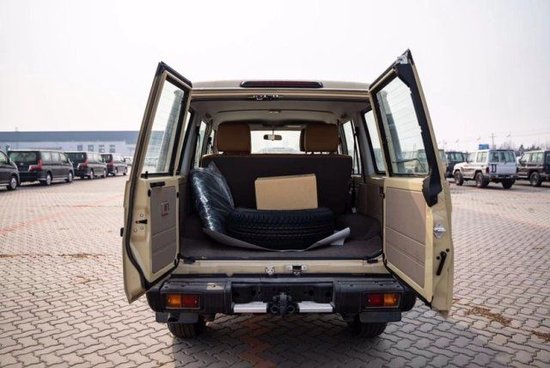 配置:23款 中东版丰田LC76 绞盘、涉水喉、桃木内饰、桃木方向盘、棕色真皮座椅! 最高配置:汽油4.0 1⃣️白/棕 5速手动变速箱 、130升油箱、 分时四驱、前差速器锁、后差速锁、 16英寸越野铝合金轮毂265/70R16、 刹车配备:前盘。后鼓、前悬螺旋弹簧、后悬板式弹簧 、 越野性能:ABS+VSC+BA+EBD+HAC+ATRC、 2气囊、彩色保险杠、白车/黑杠、 高位刹车灯 、镀铬外后视镜。带电动调节 、侧踏板 、数字时钟、五座 、半自动空调 、 熏黑大灯、电动门锁 、电动车窗 、 收音机 CD 、蓝牙 、双扬声器 、胎压监测 、 USB快速充电 、前雾灯 、后雾灯 、手套箱锁带钥匙 、日行灯、徽章、脚垫、黑色轮眉、散热格栅、原车新款彩条!