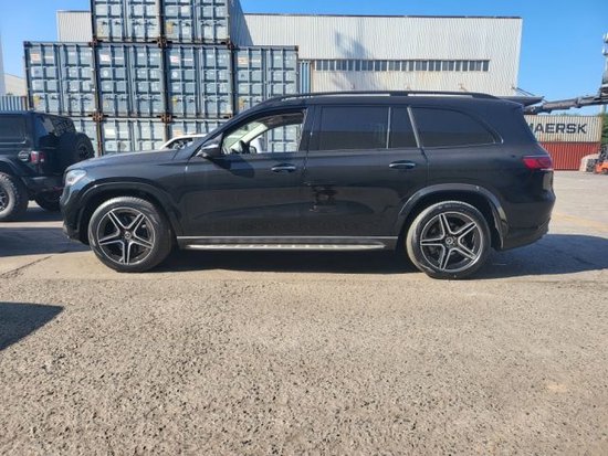 2023款奔驰GLS450的侧面我们可以看到不管是它的行李架和窗边的饰条等也采用了熏黑的设计。并且通过它成熟的腰线设计让它的车身更具雕塑感,力量感还是很足的。它的车门还带有电动吸合功能。下方采用铝制踏板,可以让人们上下车更加的方便还能增加它侧面的层次感,