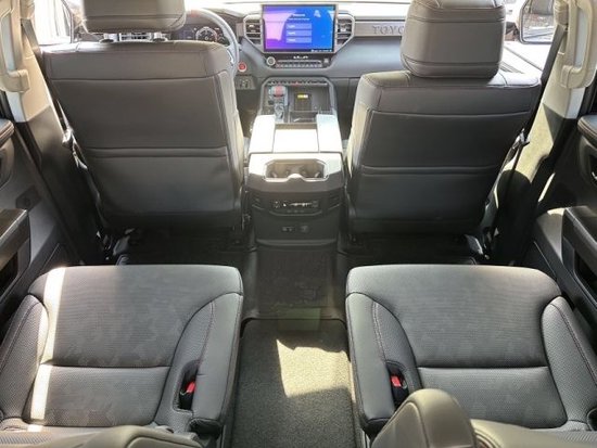 在内饰方面,全新丰田红杉造型延续了外观的硬派风格。中控应用了大面积软料材质进行包裹,触感和质感十分出众。四幅式的多功能方向盘前端为全液晶仪表盘,中控配备有大尺寸的悬浮式中控大屏查看十分便捷。空调出风口造型显得别具张力,副驾驶前端的饰板加入了丰田英文字样。