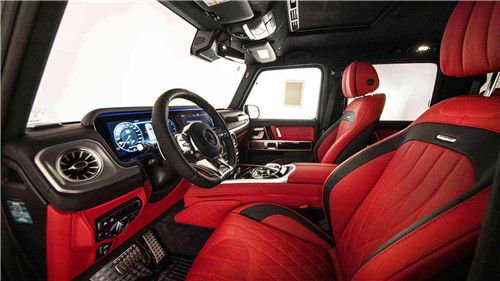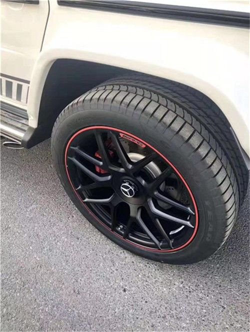 全新的直瀑式进气格栅可以说是家族最新的设计风格,也是在新车外观造型上与奔驰系列产品差异化最明显的地方。其中AMG系列的直瀑式格栅在新时代下的鼻祖可以说是AMG G (配置|询价)T 车型,它内部由12根竖置镀铬饰条组成,同时新车的保险杠进气口相比G500造型也更具有攻击性。此外,新AMG G 63最大的轮圈尺寸提供22英寸可选,进一步提升了它外观造型的彪悍程度。展车不仅采用了全新的车身涂装,还搭配了红色的轮圈装饰,更加个性。